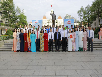 Đoàn HFIC chụp ảnh lưu niệm tại Công viên tượng đài Chủ tịch Hồ Chí Minh